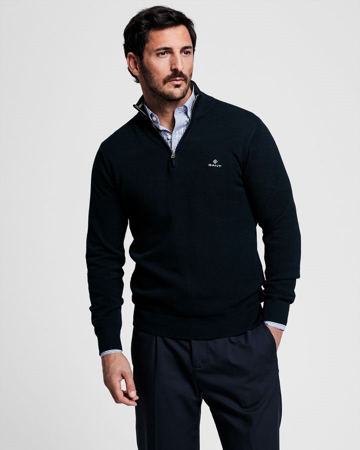 GANT סריג Cotton Pique חצי רוכסן כחול כהה 8030523