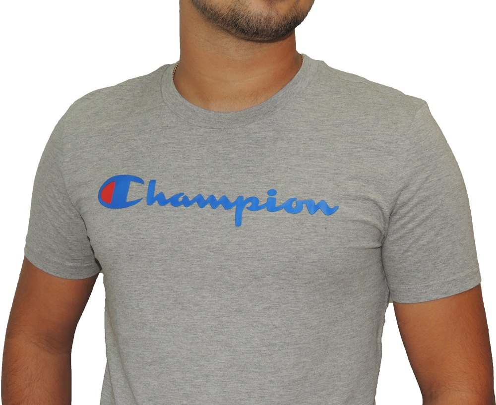 CHAMPION חולצה טישרט עם הדפס לוגו האפור