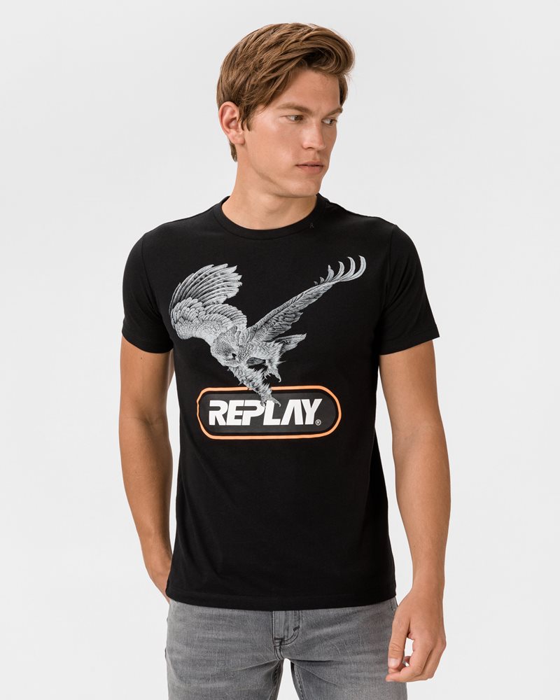 REPLAY חולצה טישרט קצרה בשחור M3481