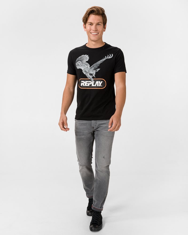 REPLAY חולצה טישרט קצרה בשחור M3014