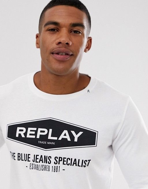 REPLAY חולצה טישרט ארוכה בלבן M3850