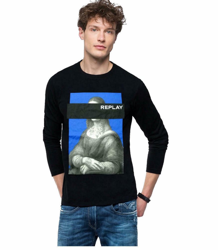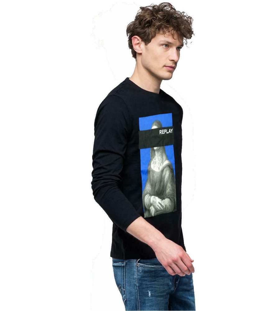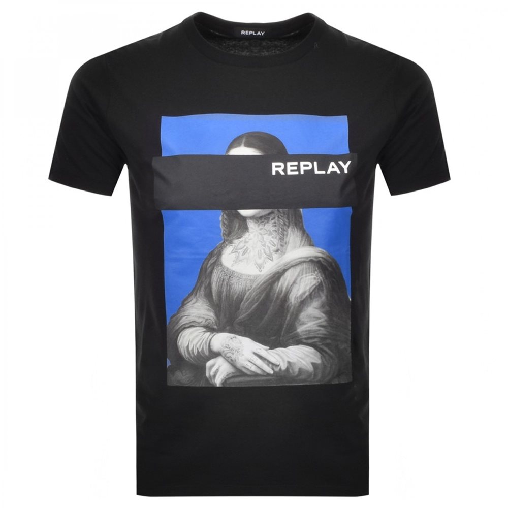 REPLAY חולצה טישרט קצרה Mona Lisa בשחור M3971
