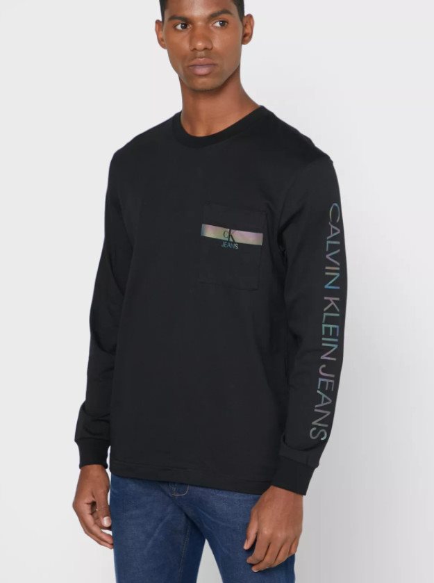 CK Calvin Klein טישרט ארוך לוגו זוהר בשחור j30j317493