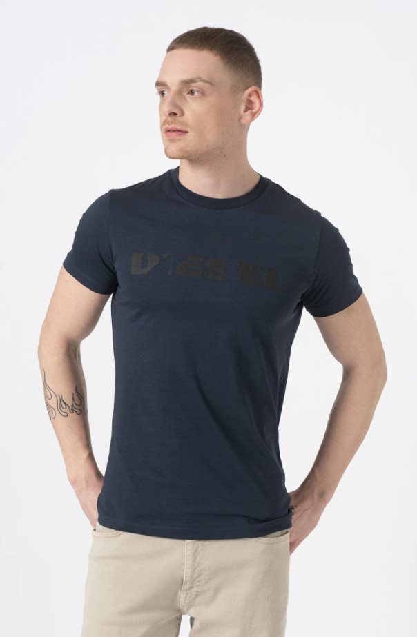 Diesel חולצה טישרט קצרה T-Diego Broken Logo בבכחול כהה 00STXQ