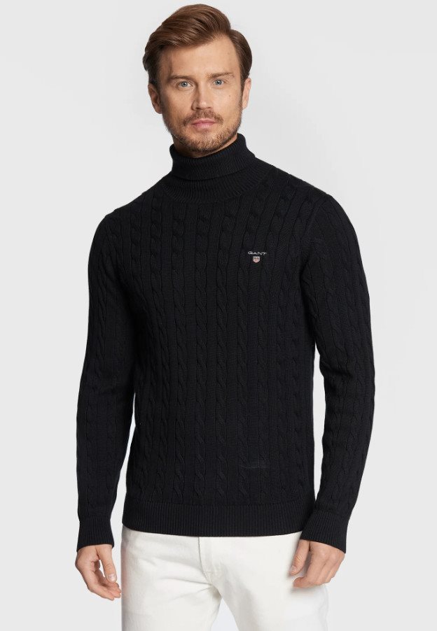 GANT סריג Cable Turtle צוורון גולף בשחור 8050507