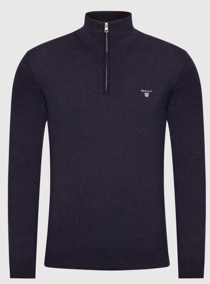 GANT סריג צמר Cotton Wool חצי רוכסן בכחול כהה 83103
