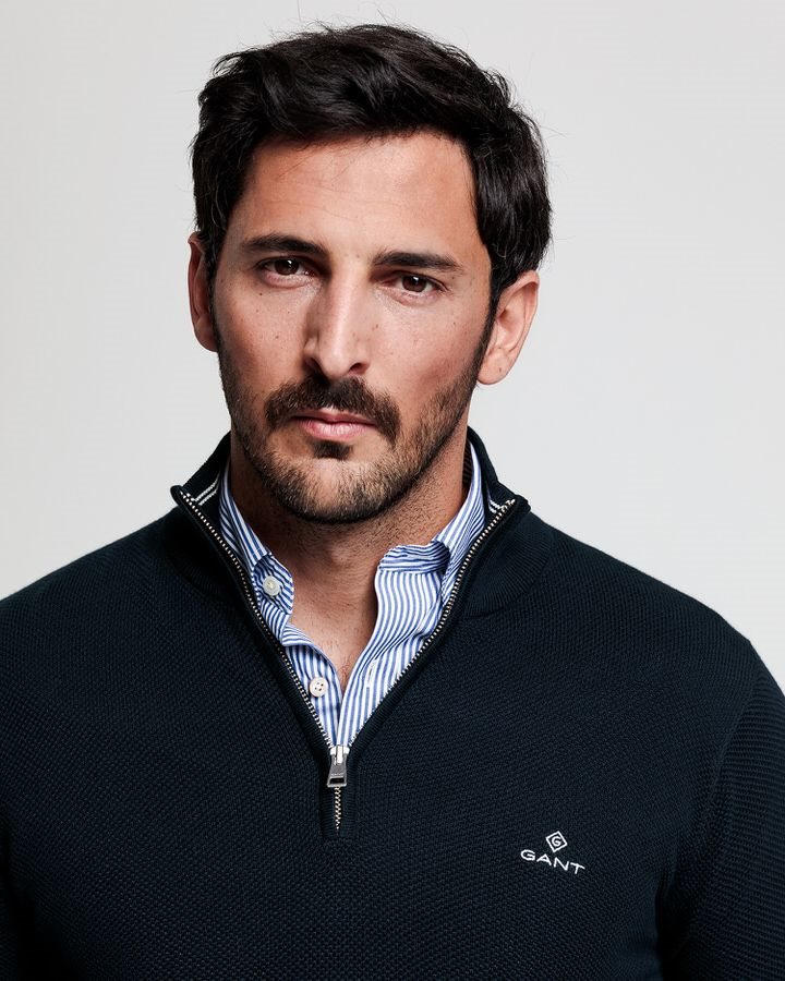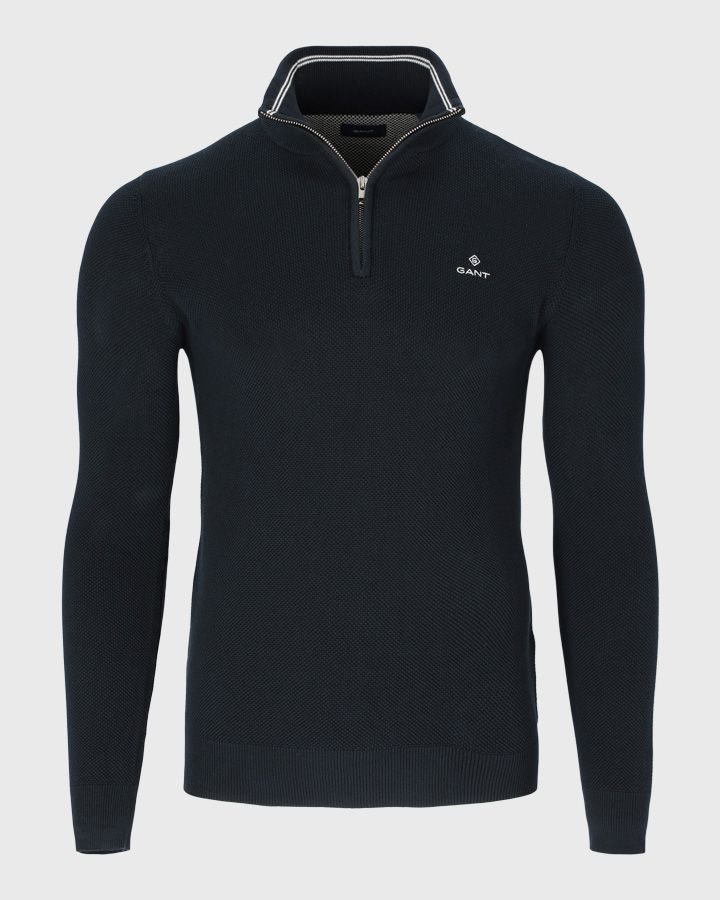 GANT סריג Cotton Pique חצי רוכסן כחול כהה 8030523