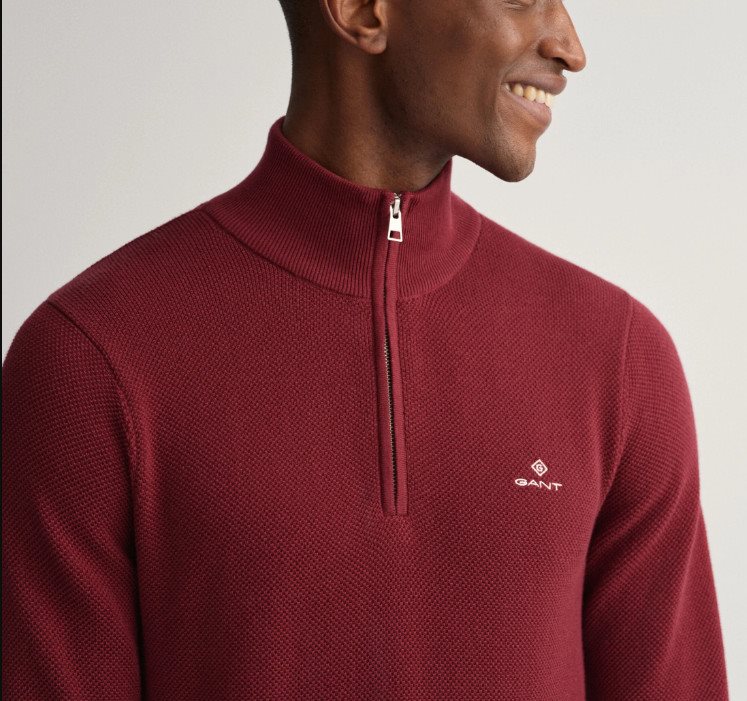 GANT סריג Cotton Pique חצי רוכסן בורדו 8030523