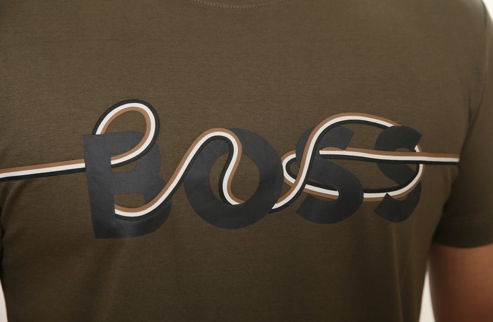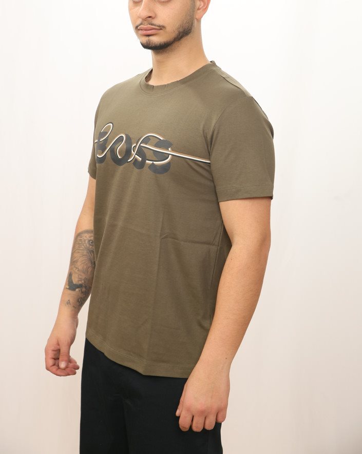 HUGO BOSS חולצה טישרט קצרה עם הדפס לוגו המותג בזית Slim Fit