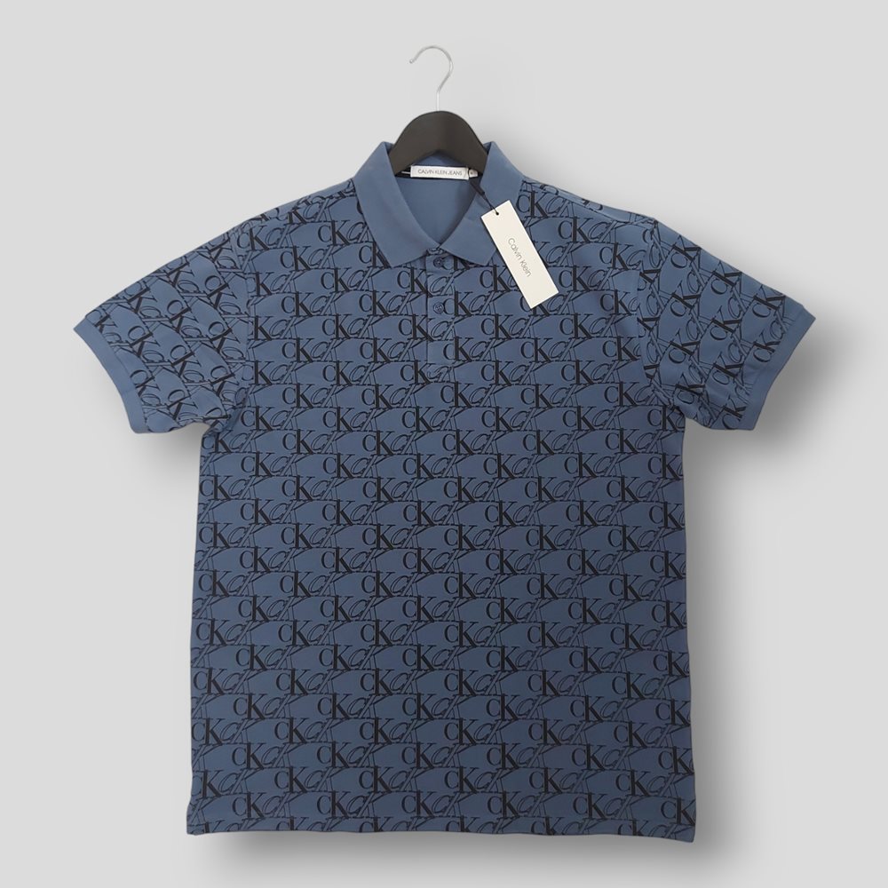 Calvin Klein Jeans חולצה פולו הדפס לוגו בצבע כחול