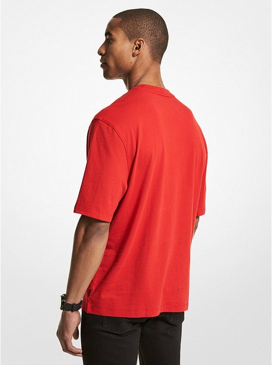 MICHAEL KORS חולצה טישרט קצרה עם הדפס לוגו המותג באדום אוברסייז